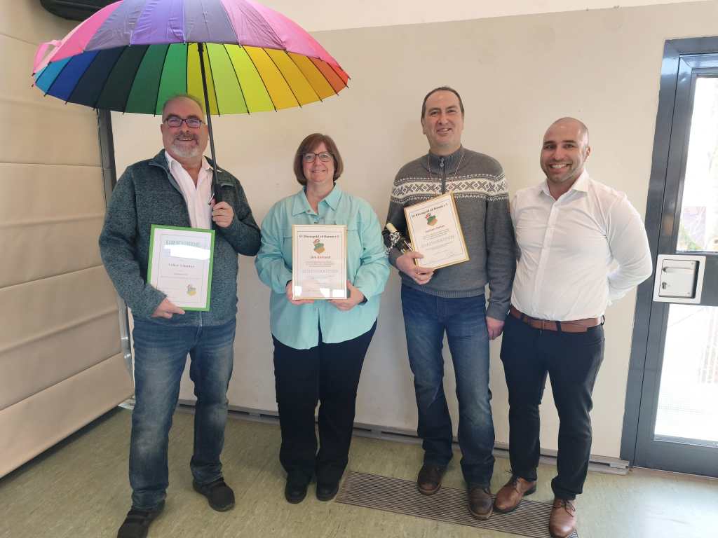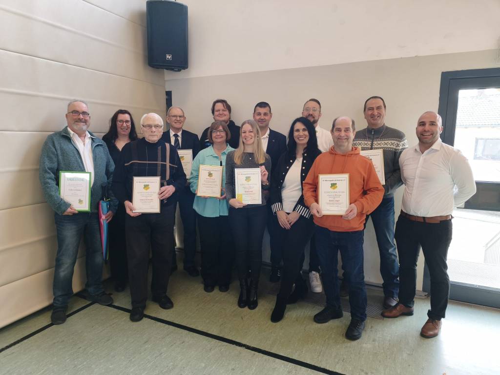 Helmut Schmittel (80 Jahre), Willi Köhler (70 Jahre), Gernot Arnold (60 Jahre), Michael Handrick und Stefan Jäger (je 50 Jahre) sowie Fabian Pollatzk, Bärbel Koska, Julian Schmitt und Kirsten Reil (je 25 Jahre).
