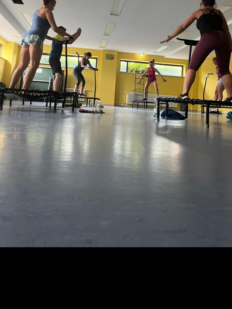 Soft-Jump: Komm in Dein Tempo rein. Mach das, was Du kannst, die Übungen sind angepasst und eignen sich für Beginner, Senioren und Wiedereinsteiger, dazu gibt es Entspannungsübungen aus dem Yoga.