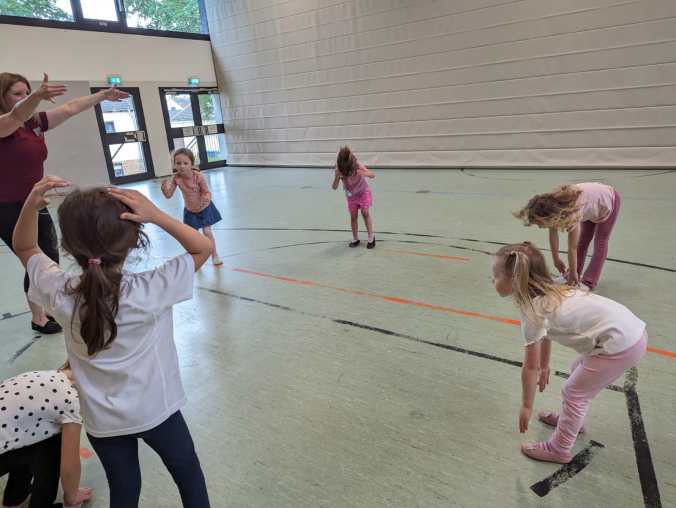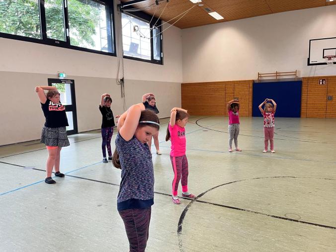 Hier werden dann verschiedene rhyth-mische Spiele, Bewegungstänze und kleine einfache Tanzchoreographien einstudiert.