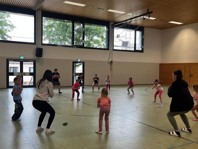 Hier tanzen die Kids schon einen kompletten Tanz durch und erlernen verschiedene Tanzschritte. Aber immer noch sollte der Spaß im Vorder- grund stehen.
